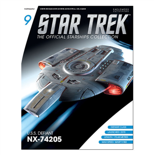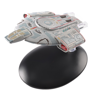 Another of the most popular ships in Star Trek’s history Starfleet’s first true warship, the U.S.S. Defiant. The model in the collection is based on a combination of the VFX teams CG model and the original studio model. Inside your magazine, you will find an in-depth profile of the U.S.S. Defiant NX-74205 built in response to the Borg threat. This was Starfleet’s first-ever warship and you get to explore how the design of the U.S.S. Defiant evolved into a unique starship.
