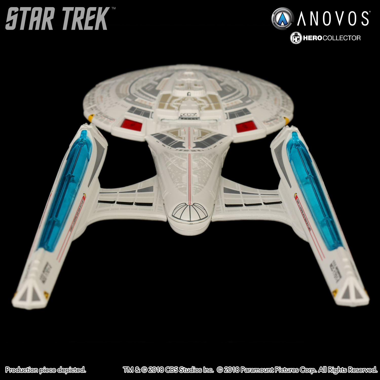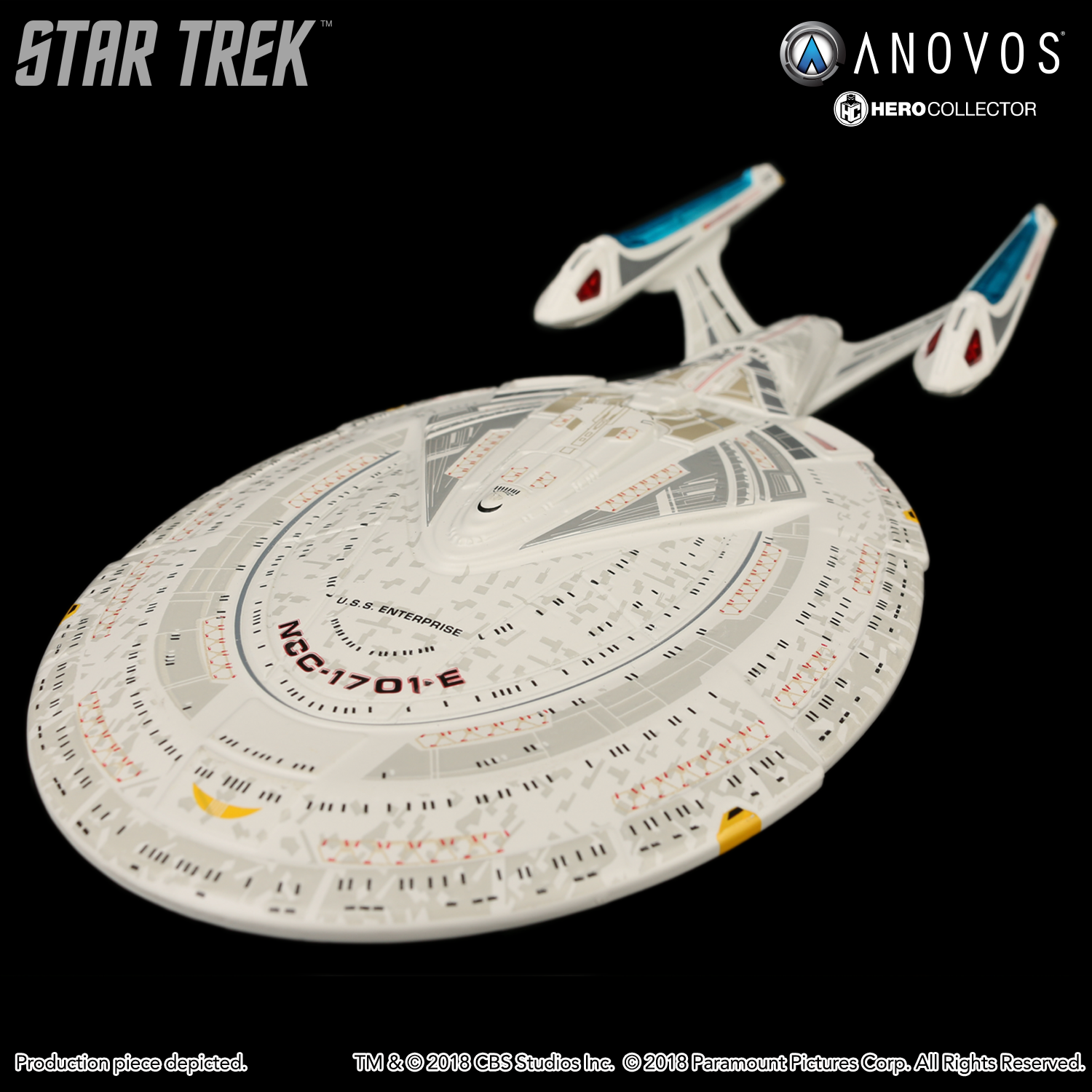 Designed by John Eaves, the Enterprise-E was brought to life on screen to the delight of a new era of Trek fans — and is translated in die-cast metal and high-quality ABS materials, just as Geordi himself would intend.