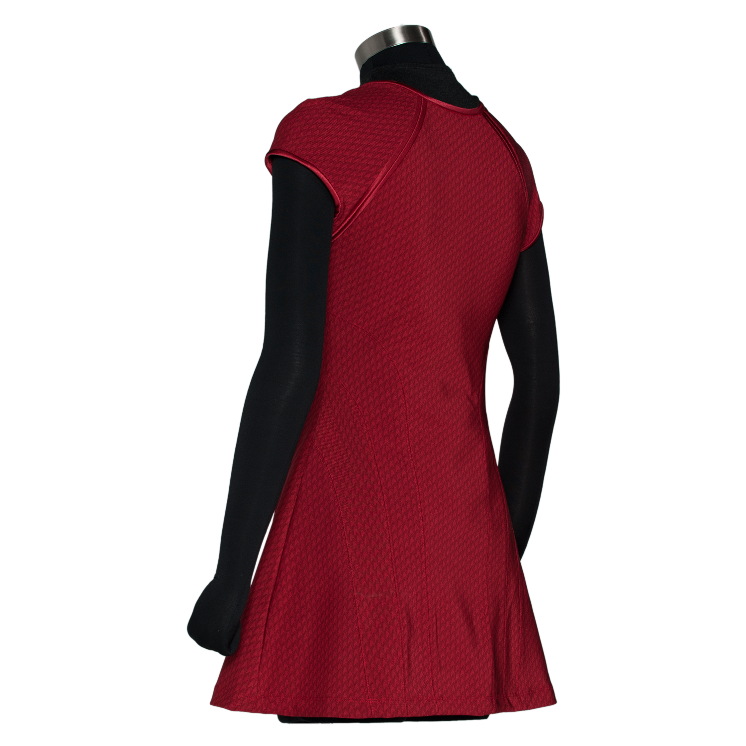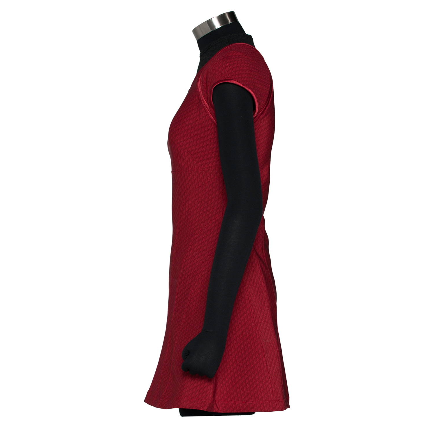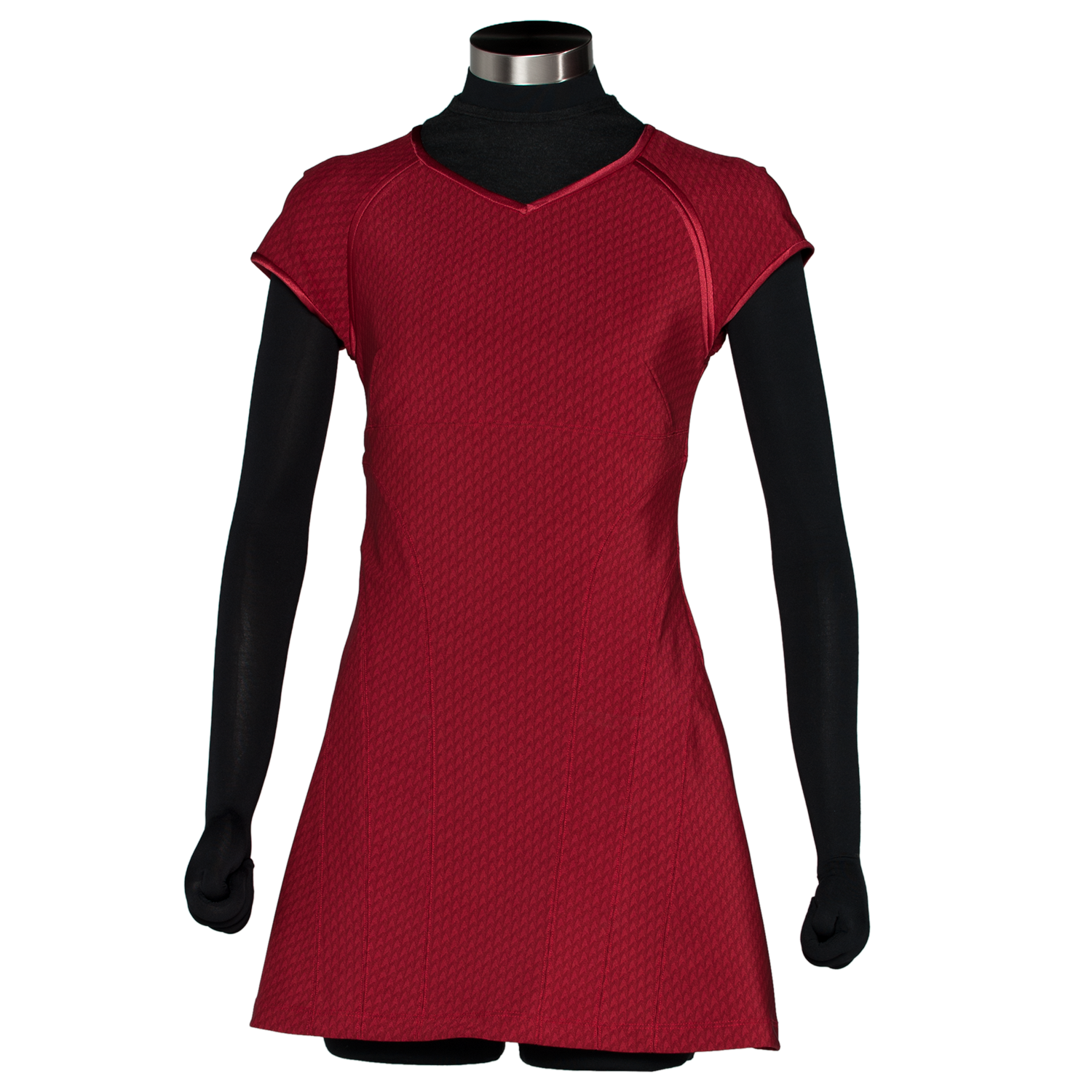 Faithful replica of the dress worn in the Star Trek™ movies directed by J.J. Abrams. Replicated using patterns from screen-used uniforms, dresses are made of Jumbo Spandex featuring intricate Starfleet delta pattern that is printed and dyed to match coloring used by production. Cap sleeves as worn by Uhura.