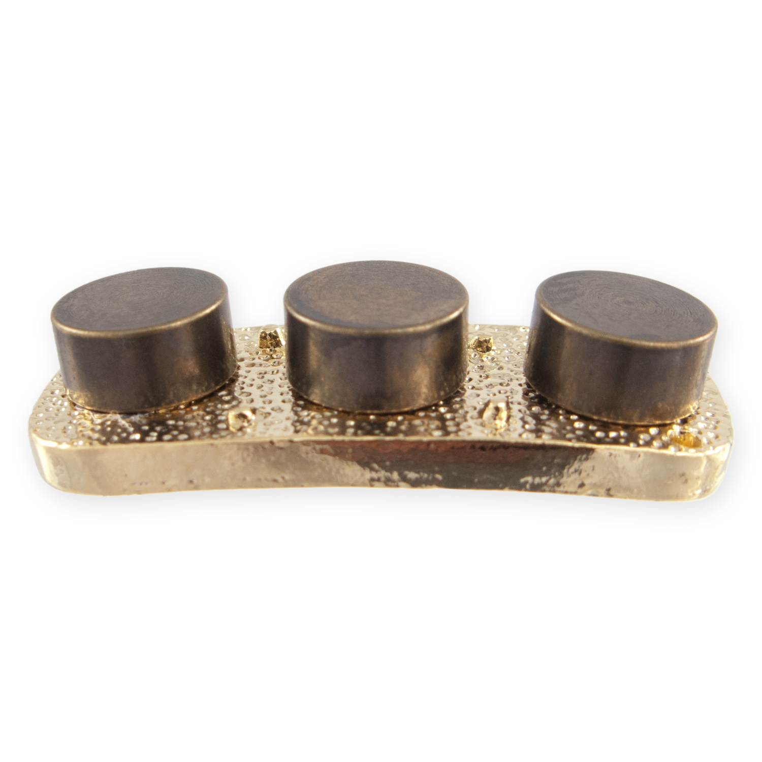 - Rare-earth magnet inset in back side of each pip — all by hand.