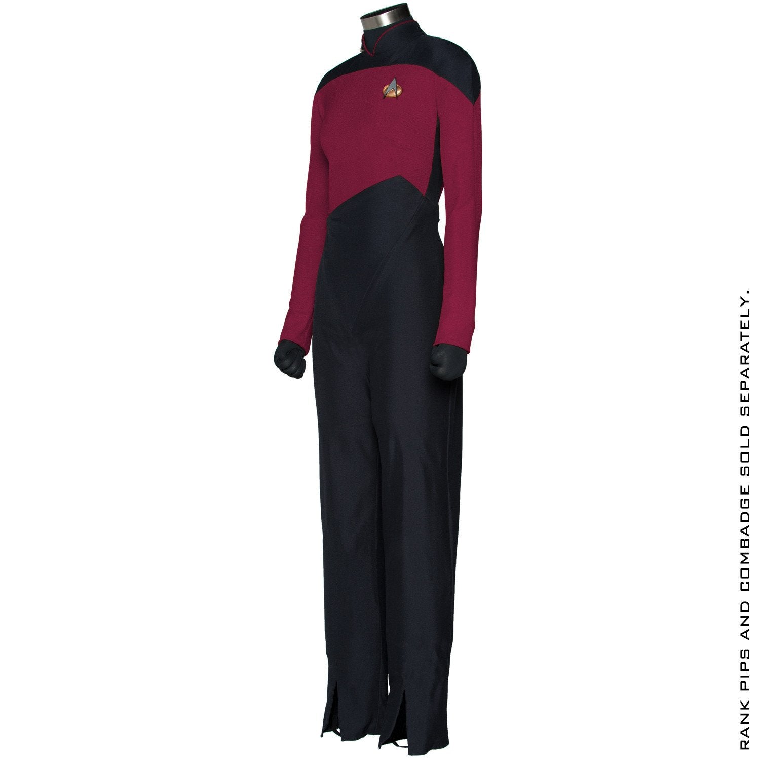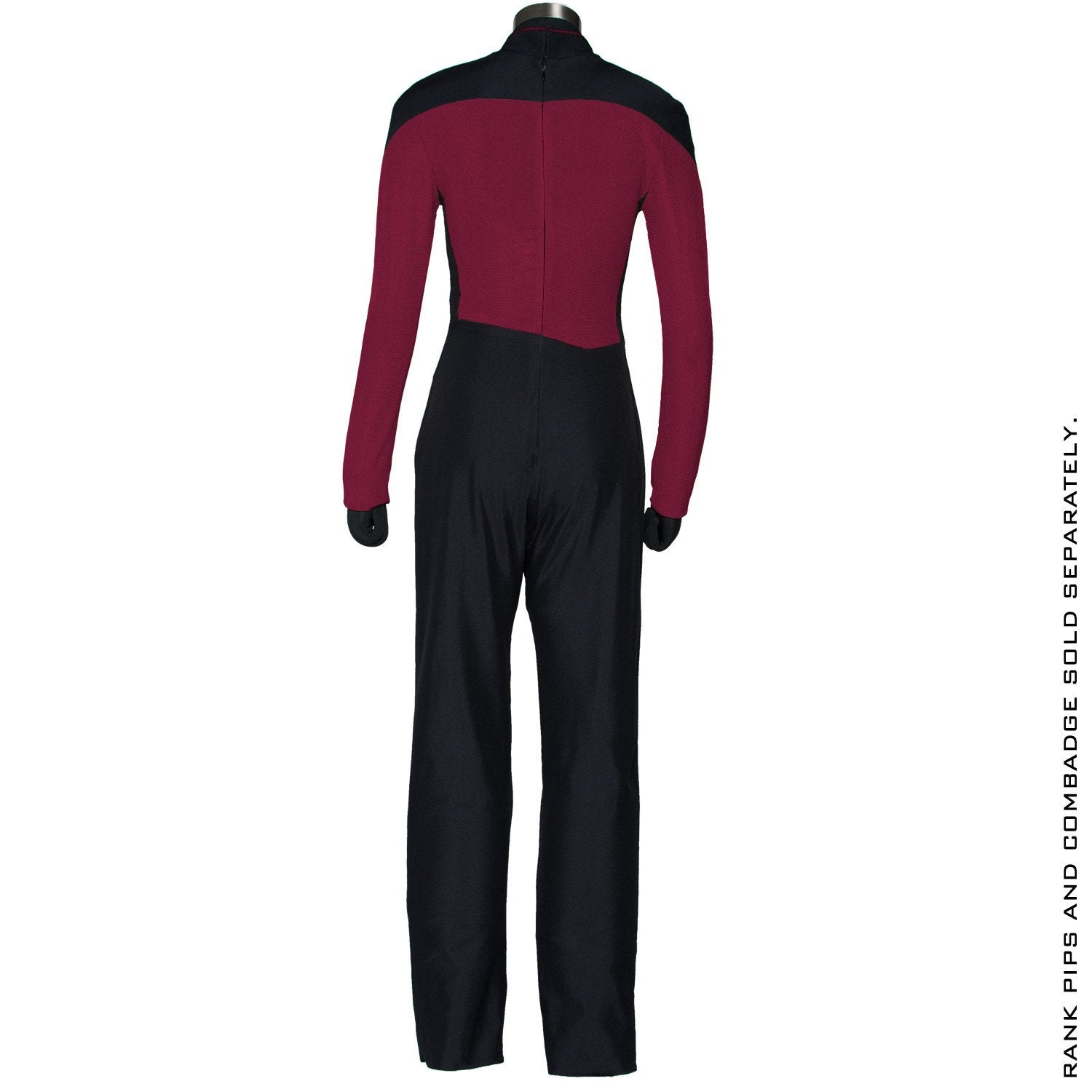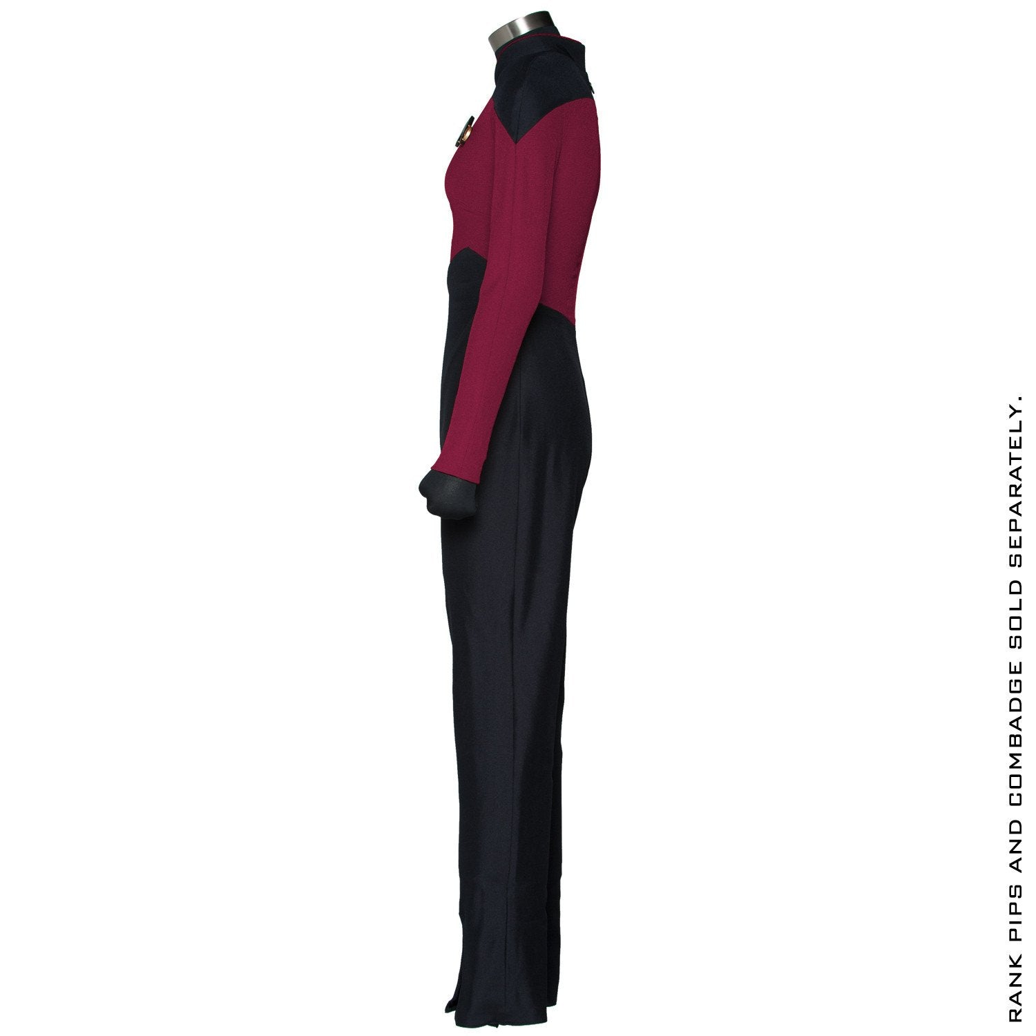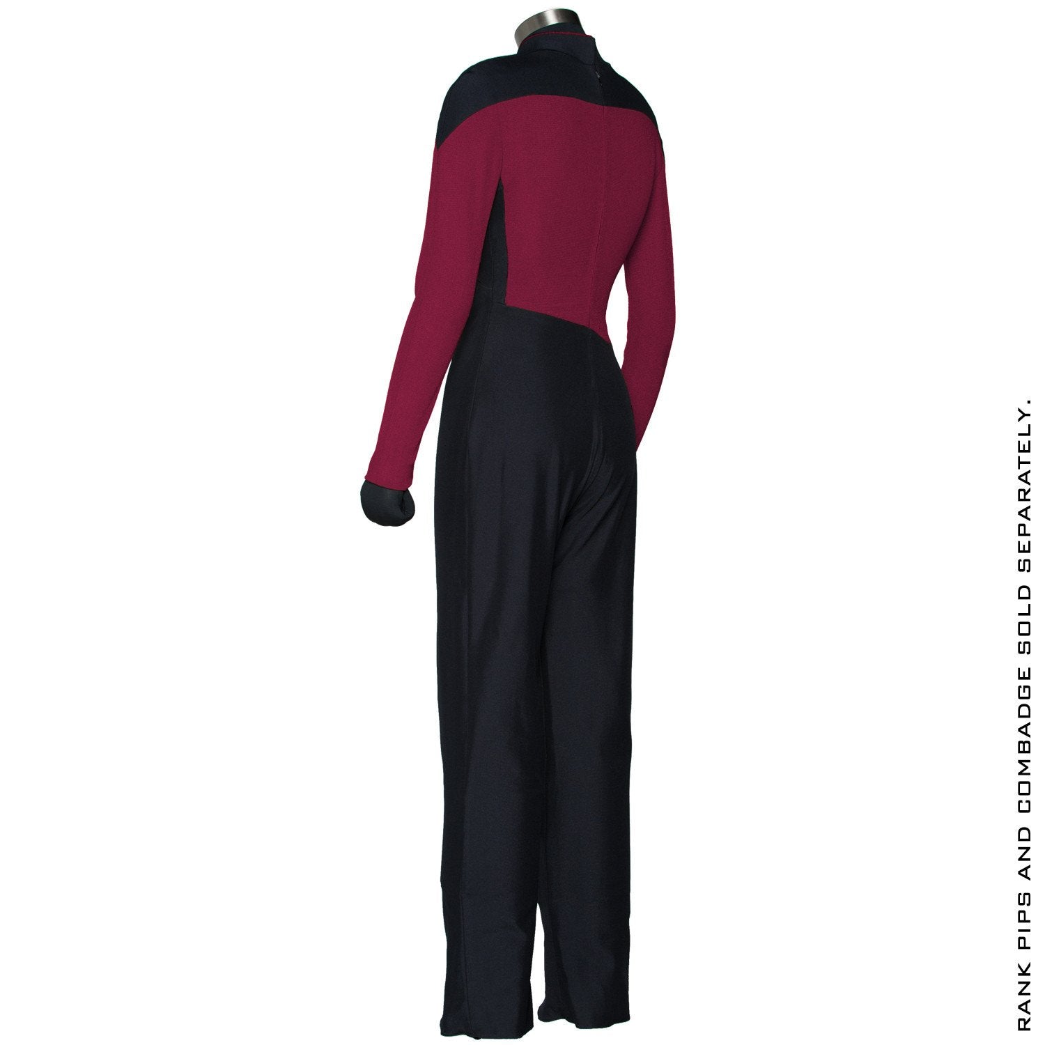In celebration of this milestone, ANOVOS is proud to offer the Premier Line Star Trek: The Next Generation Women's Command Burgundy Uniform Jumpsuit.