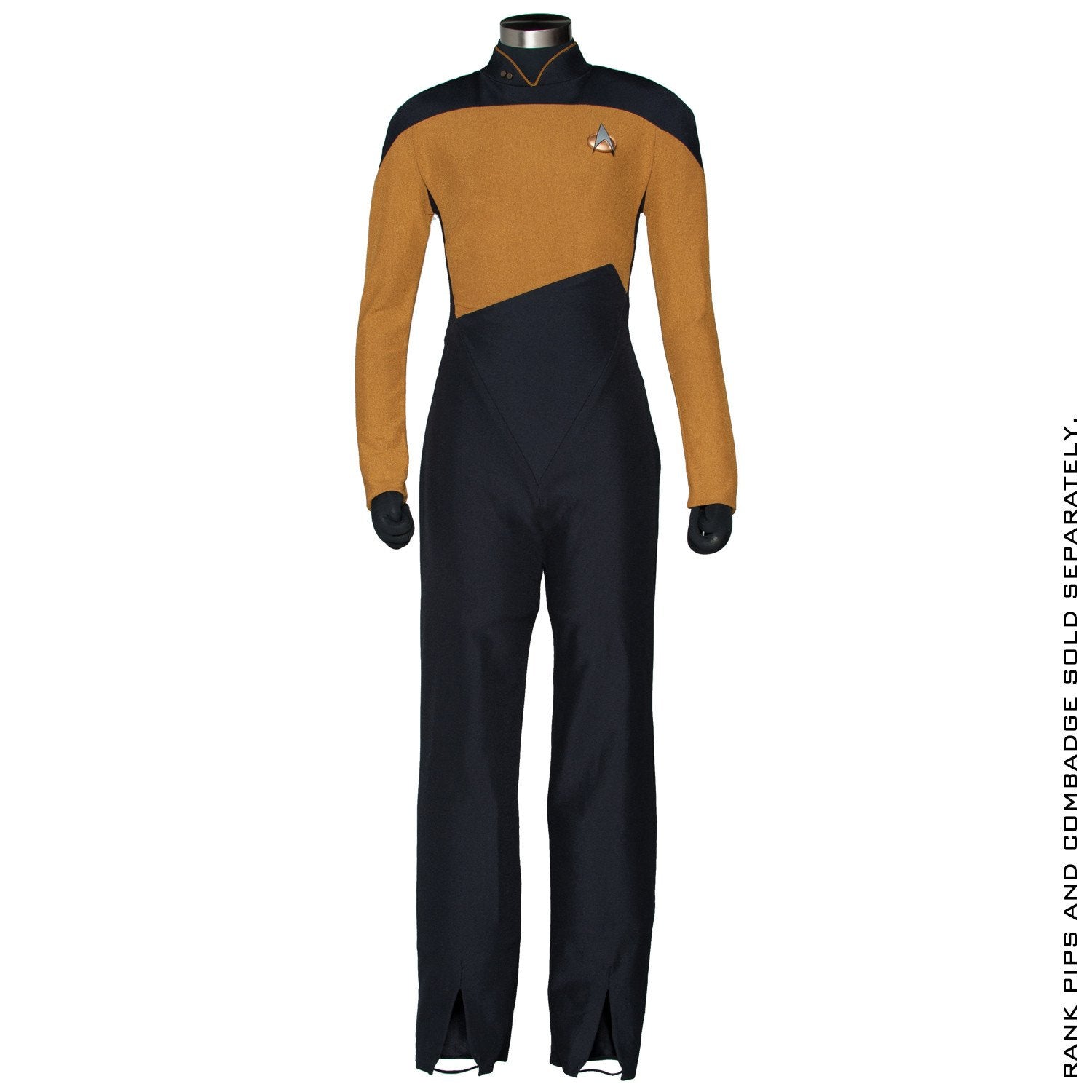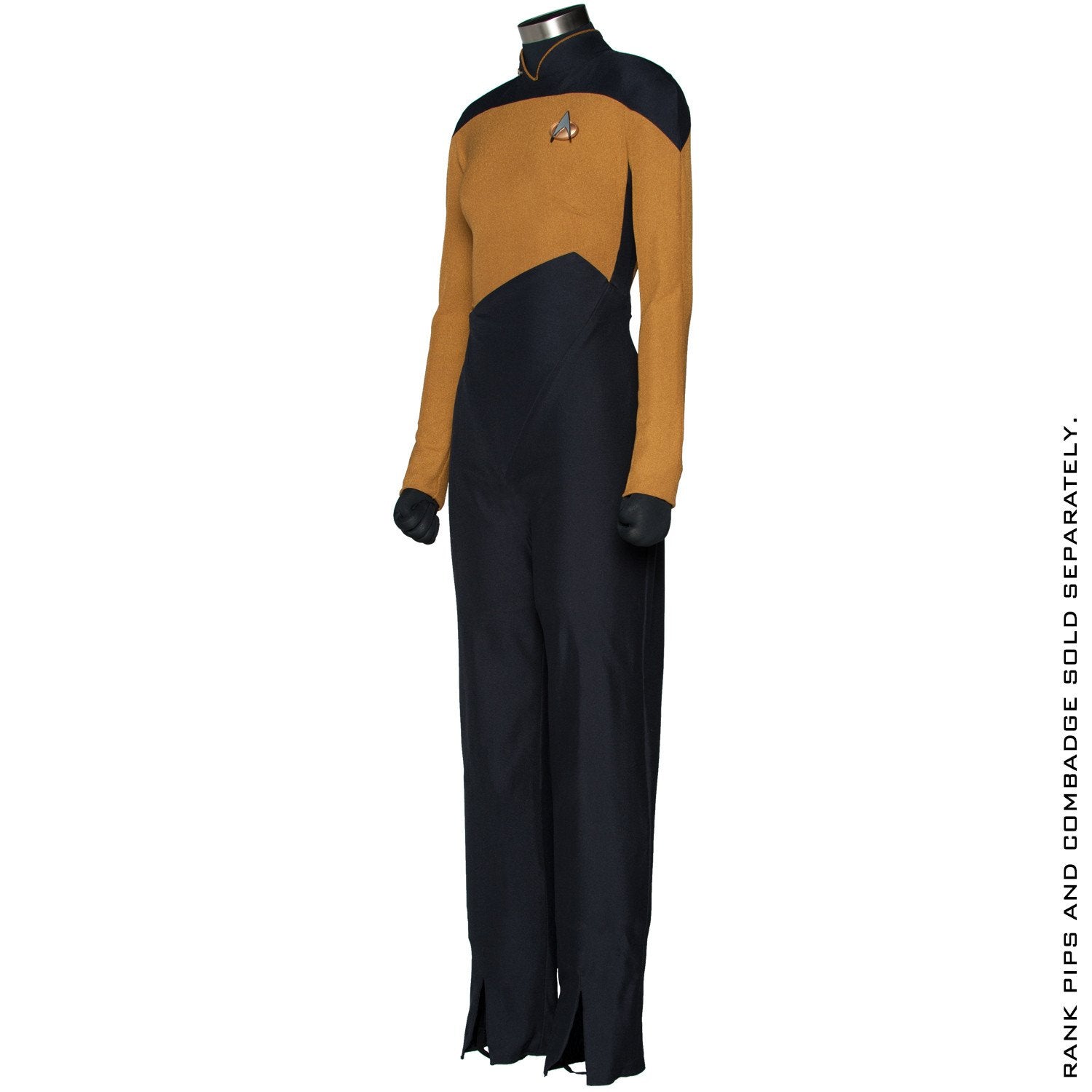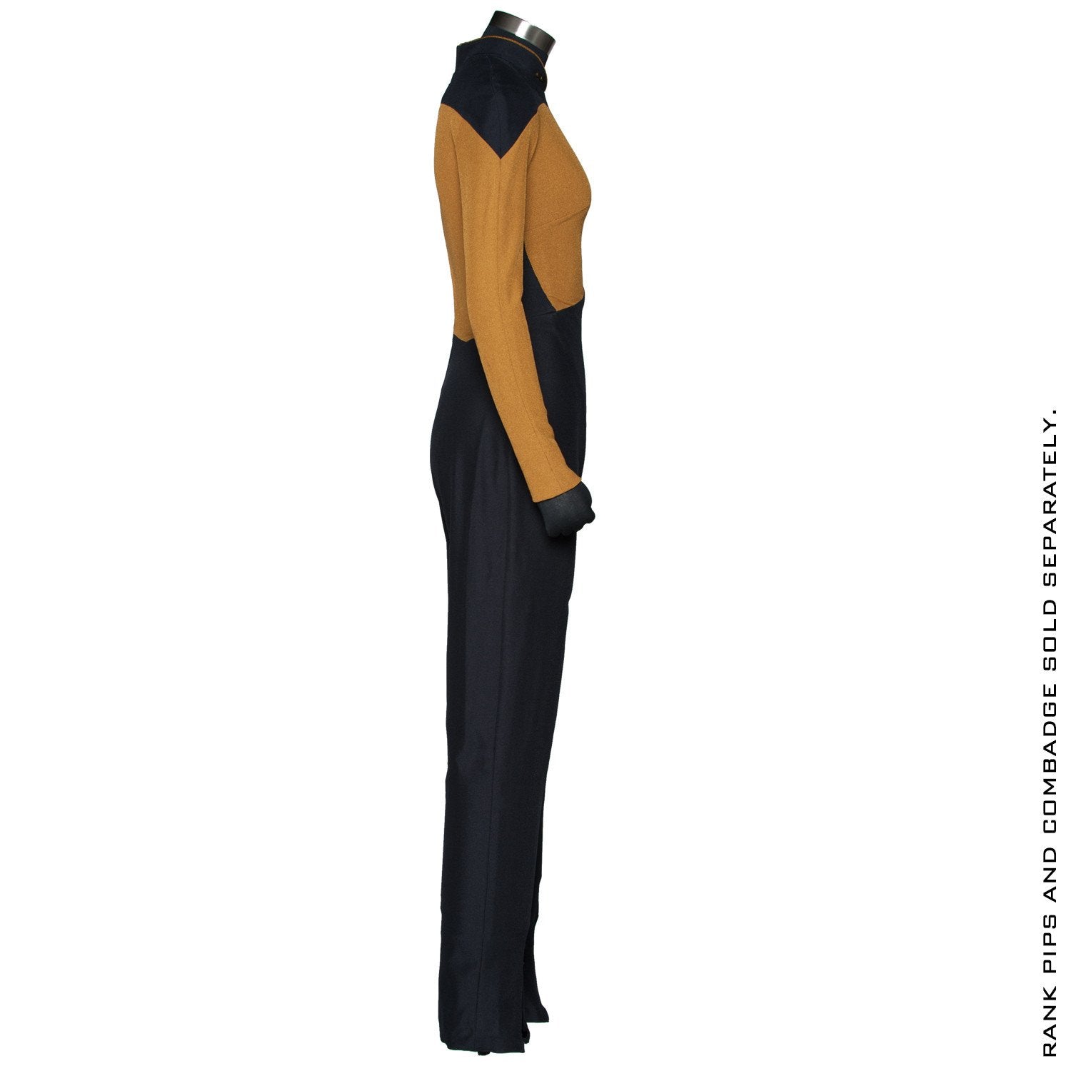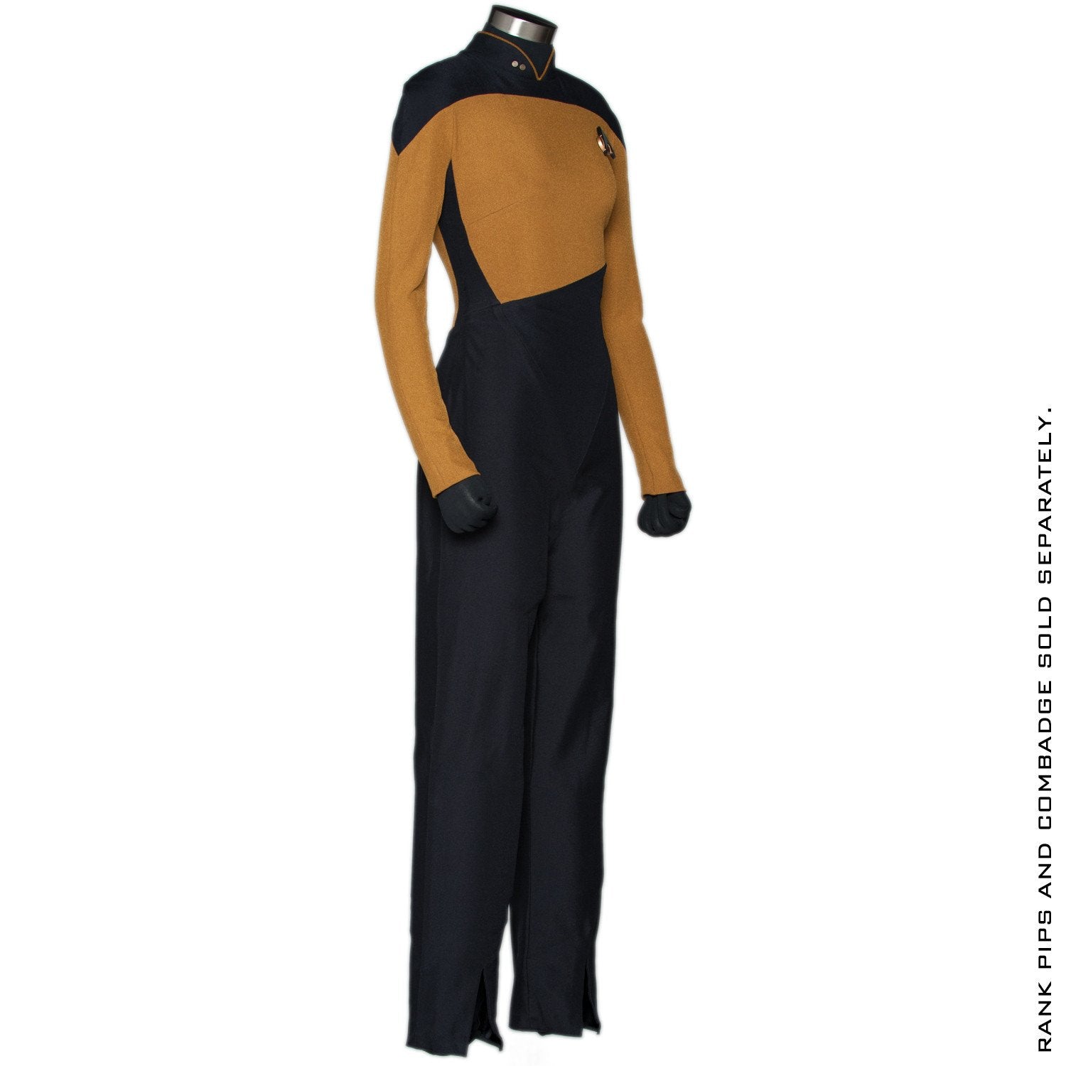 In celebration of this milestone, ANOVOS is proud to offer the Premier Line Star Trek: The Next Generation Women's Services Mustard Uniform Jumpsuit, as worn in the later seasons of the science fiction series.