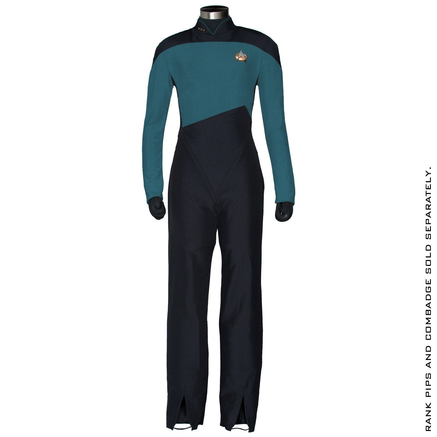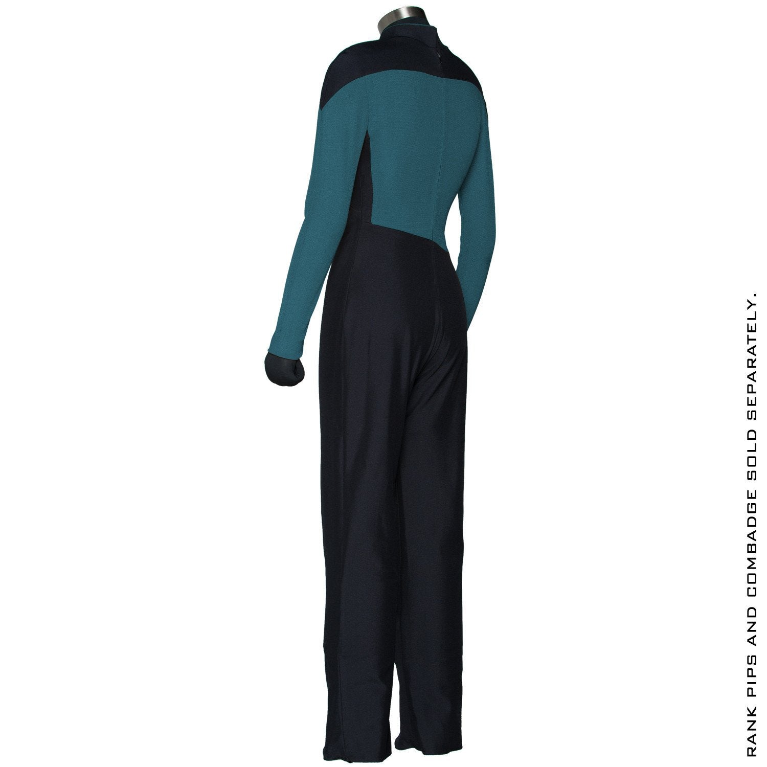 In celebration of this milestone, ANOVOS is proud to offer the Premier Line Star Trek: The Next Generation Women's Sciences Green Teal Uniform Jumpsuit, as worn in the later seasons of the science fiction series.