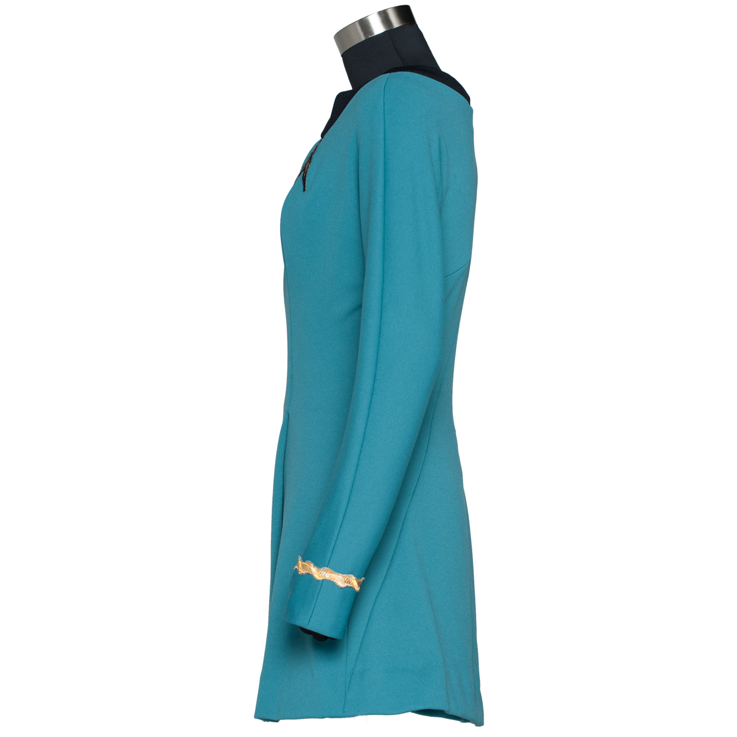 This dress is available with the Lieutenant rank braid, and features the Sciences Division Delta Shield Enterprise patch. Featuring the exact double-knit fabric from the original uniforms, and fabric dyed to match screen-used fabric samples, this dress is lovingly crafted as a tribute to the Original Series. Own a piece of retro nostalgia with this exclusive replica.