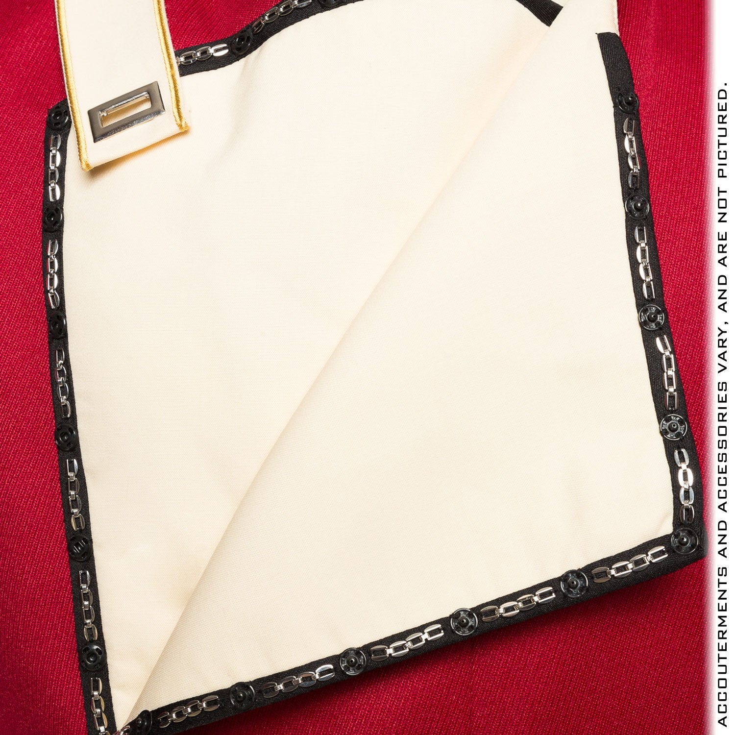 This uniform uses a custom milled and dyed cavalry twill that replicates both the look and feel of the original uniform’s wool élastique, while being more comfortable, durable, and cost effective. Lastly, we recreated the Officer’s Chest Insignia, rank accouterments, and lapel chain using original screen-used physical reference. Thus creating the most accurate representation of rank, badges, and chain without the distortions of time from mould shrinkage or interpretation. Every detail was scrutinized and sourced to provide you our most exacting uniform to date.